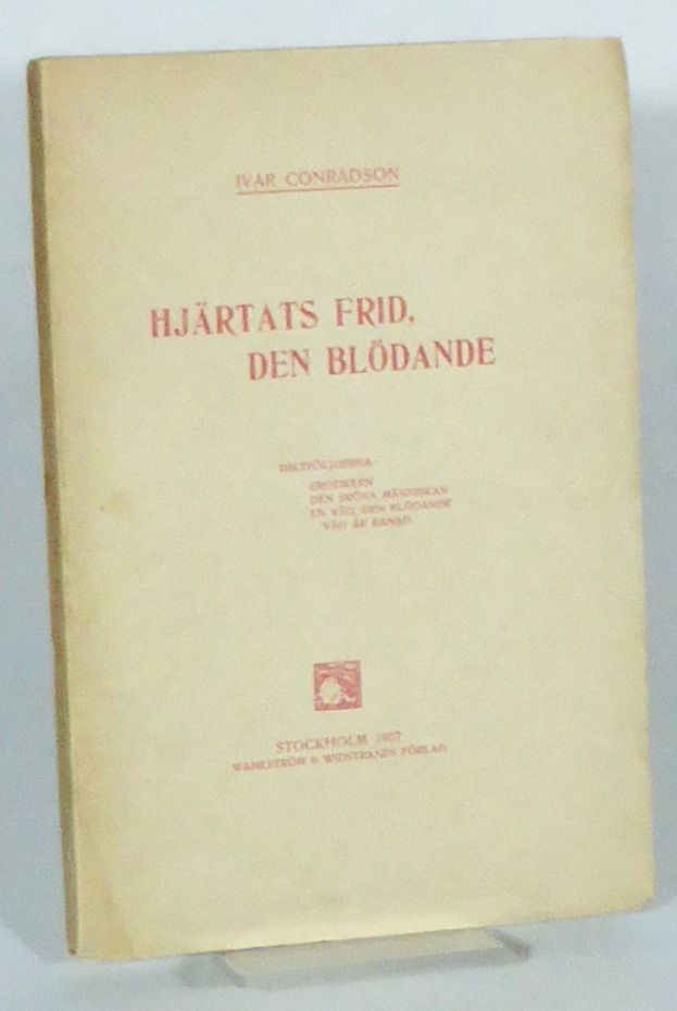 Stockholm; Wahlström & Widstrand, 1907. Originalupplaga. 19,5x13 cm. 101, (2, 1 blank) s. Häftad med tryckt omslag. Mestadels ouppskuren. Ryggen mörknad och med ensvag, längsgående futrand som även berör omslagets inre marginaler på ett par ställen. Det överdimensionerade omslaget är aningen veckat i nedre marginalerna och hörnen. Bakre omslag med några småfläckar och ett riss i yttermarginalen. Fin inlaga. Denna författarens tredje diktsamling fick frän kritik av bl. a. Fredrik Böök. Conradson återkom inte med någon ytterligare diktsamling förrän 1950, då med ett bearbetat urval ur de tre dittills utgivna samlingarna.