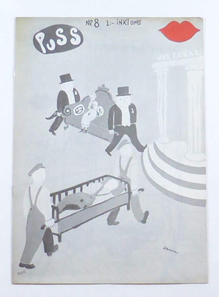 Stockholm; Puss tryck, [1969]. 29,5x21 cm. Opaginerad. (16) s. inkl. omslag. Klammerhäftad. Några svaga skrynklor på främre omslag. Fint ex. Med bidrag av bl. a. Lasse Söderberg och Sture Johannesson.