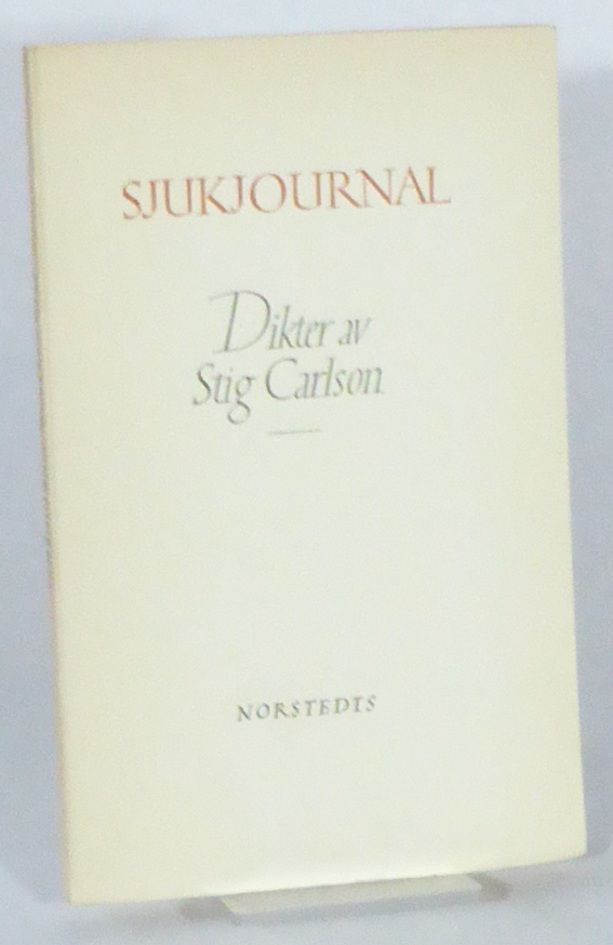 Stockholm; Norstedts, 1945. Originalupplaga. 20,5x13 cm. 75, (2, 1 blank) s. Häftad med tryckt omslag. Omslag av Karl-Erik Forsberg. Ouppskuren. Det överdimensionerade omslaget är aningen veckat i nedre marginalerna. Ovanligt fint exemplar av Carlsons debut.