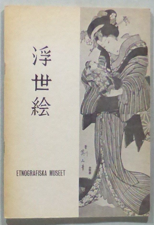 Uki-yo-e. ""Bilder av flytande liv"". Traditionellt japanskt samhällsliv belyst med hjälp av en återupptäckt samling träsnitt av gamla mästare. Etnografiska museet, Stockholm, 30 mars -- 30 april 1968.
