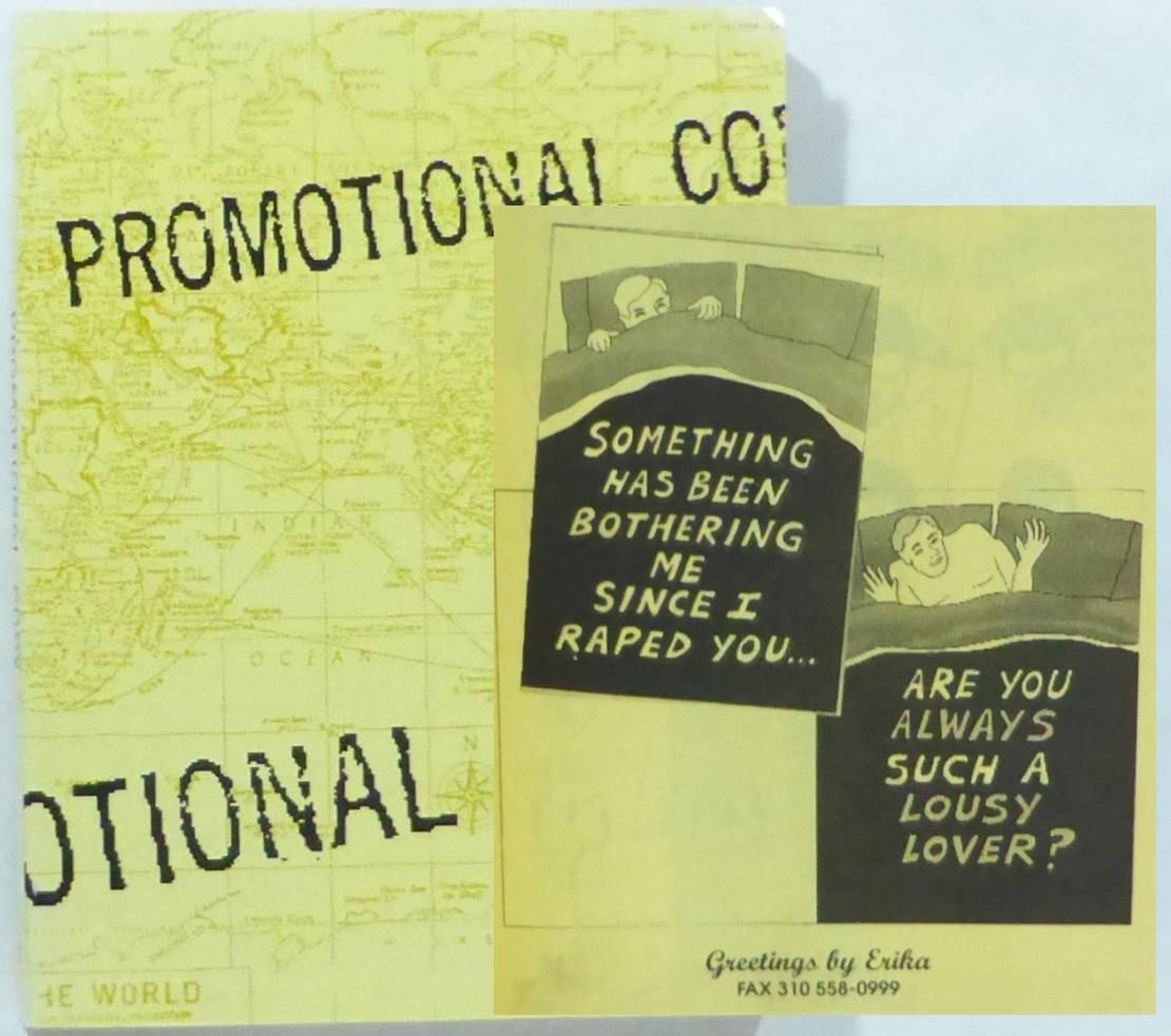 New York; Mimi Somerby, 1993. 28x21,5 cm. 400 pp. Illustrated. Original printed wrappers. Several leaves have a small nick at top corner. A fine copy. ""Created as an alternative exhibition space for artists to advertise their projects and ideas at no cost, PROMOTIONAL COPY is a bound anthology of self-promotional advertisements designed by artists, collaboratives, poets, and writers."" (preface). Contains original contributions by more than 250 contemporary artists. From the library of Anders Tornberg Gallery in Lund, Sweden, and with a stamp confirming this on the last blank page.