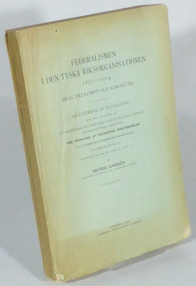 Federalismen i den tyska riksorganisationen 1871-1914. Dess tillkomst och karaktär.