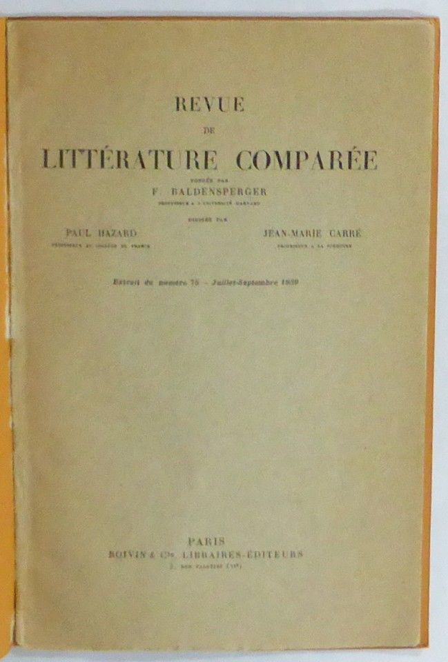 Strindberg et Nietzsche. (Offprint from Revue de littérature comparée, tome 19, 1939).