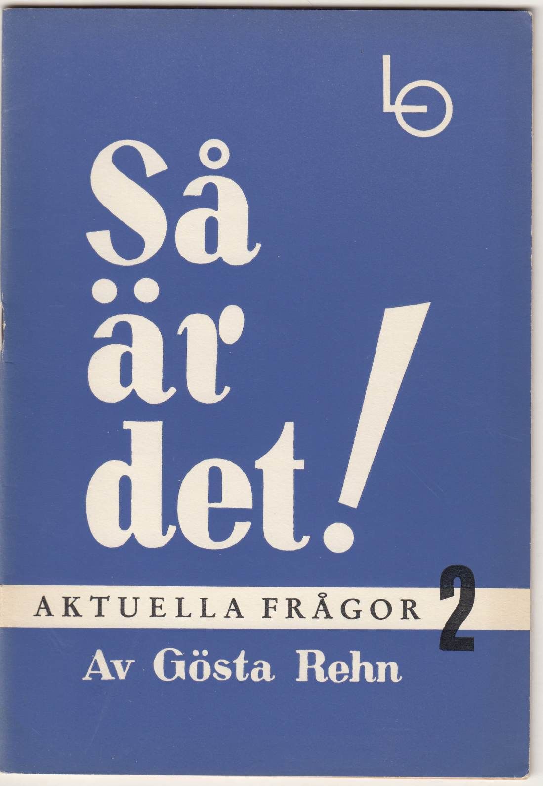 Stockholm; LO, 1944. (Aktuella frågor 2). 20x14 cm. 40 s. Klammerhäftad med tryckt omslag. Fint skick. Genomgående litet hörnveck upptill. Kritisk genomgång av Hilding Hagbergs argumentation från diskussionen med Ernst Wigforss rörande ""Den ekonomiska politiken under och efterkriget"" på Konserthuset i Stockholm 27 januari 1944.