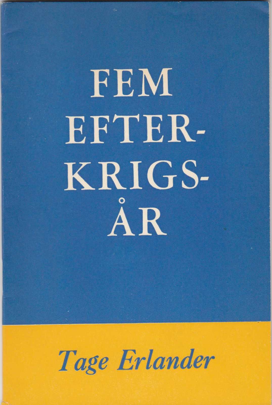Stockholm; Tidens förlag, 1950. (Socialdemokratisk skriftserie 26). 19x13 cm. 29, (1, 2 blanka) s. Klammerhäftad med tryckt omslag. Fint ex. Erlander redogör här för sin och socialdemokraternas syn på utfallet av den svenska efterkrigspolitiken - såväl framgångar som motgångar - samt sina tankar kring vägen framåt utifrån ett internationellt perspektivt i ljuset av Sovjetunionens ställning och fortsatta krig i världen (t. ex. Korea).