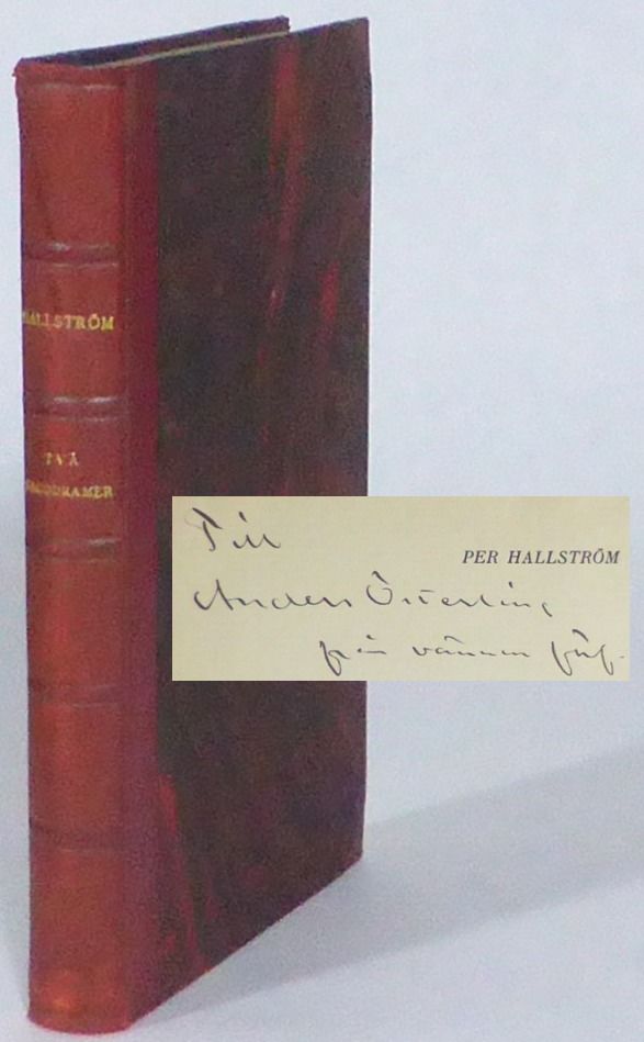 Stockholm; Bonniers, 1910. Originalupplaga. 19x13 cm. 214 s. Osignerat rött halvfranskt band med förgylld ryggtitel, marmorerade pärmpapper och stänkmålade snitt. Omslag ej medbundet. Ryggen något flammig och nött, pärmhörnen aningen nötta. Bra ex. Innehåller ""Önskningarna. Saga i tre akter."" respektive ""Tusen och en natt"". Dedikation: ""Till / Anders Österling / från vännen förf.""