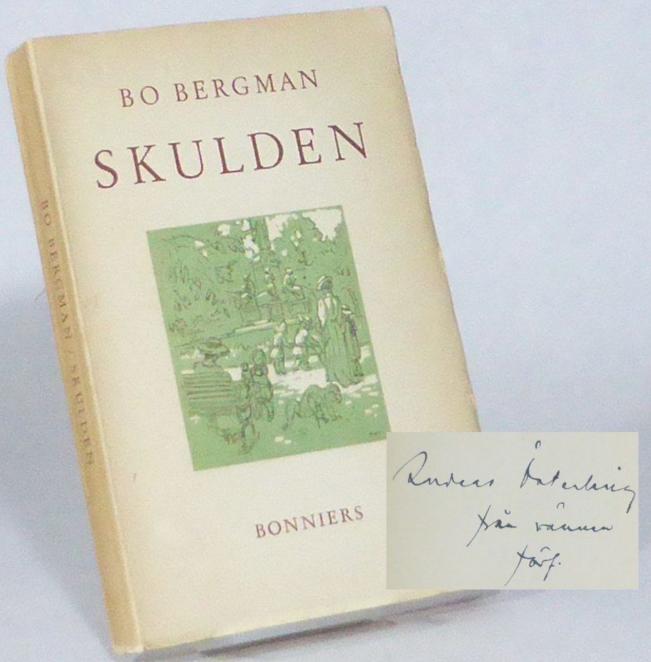 Stockholm; Bonniers, 1948. Originalupplaga. 19,5x13 cm. 234, (1, 1 blank) s. Häftad med tryckt omslag. Omslag av Yngve Berg. Ryggen aningen mörknad. Det överdimensionerade omslaget är aningen veckat i nedre marginalerna. Kort reva i nedre framfals. Fin inlaga. Dedikation: ""Anders Österling från vännen förf.""