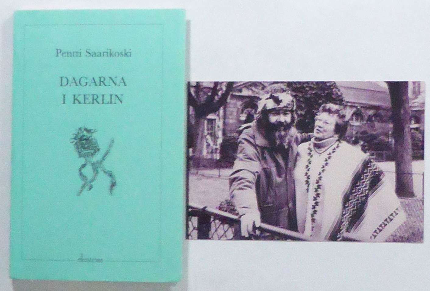 Lund; Ellerströms, 1997. (Enhörningsserien). 17,5x11 cm. 62, (2) s. Häftad med tryckt omslag. Obetydligt nött rygg. Fint ex. Dagboken är översatt från författarens manuskript och innehåller även teckningar av Saarikoski. Med en dedikation från Mia Berner till Anne de Laval Wipp och John Wipp: ""Ann & John, vårt återseende var en stark upplevelse / låt oss mötas, kanske strax efter jul? Från Mia i [?]"". Med ett bilagt fotografi av Saarikoski och Berner.