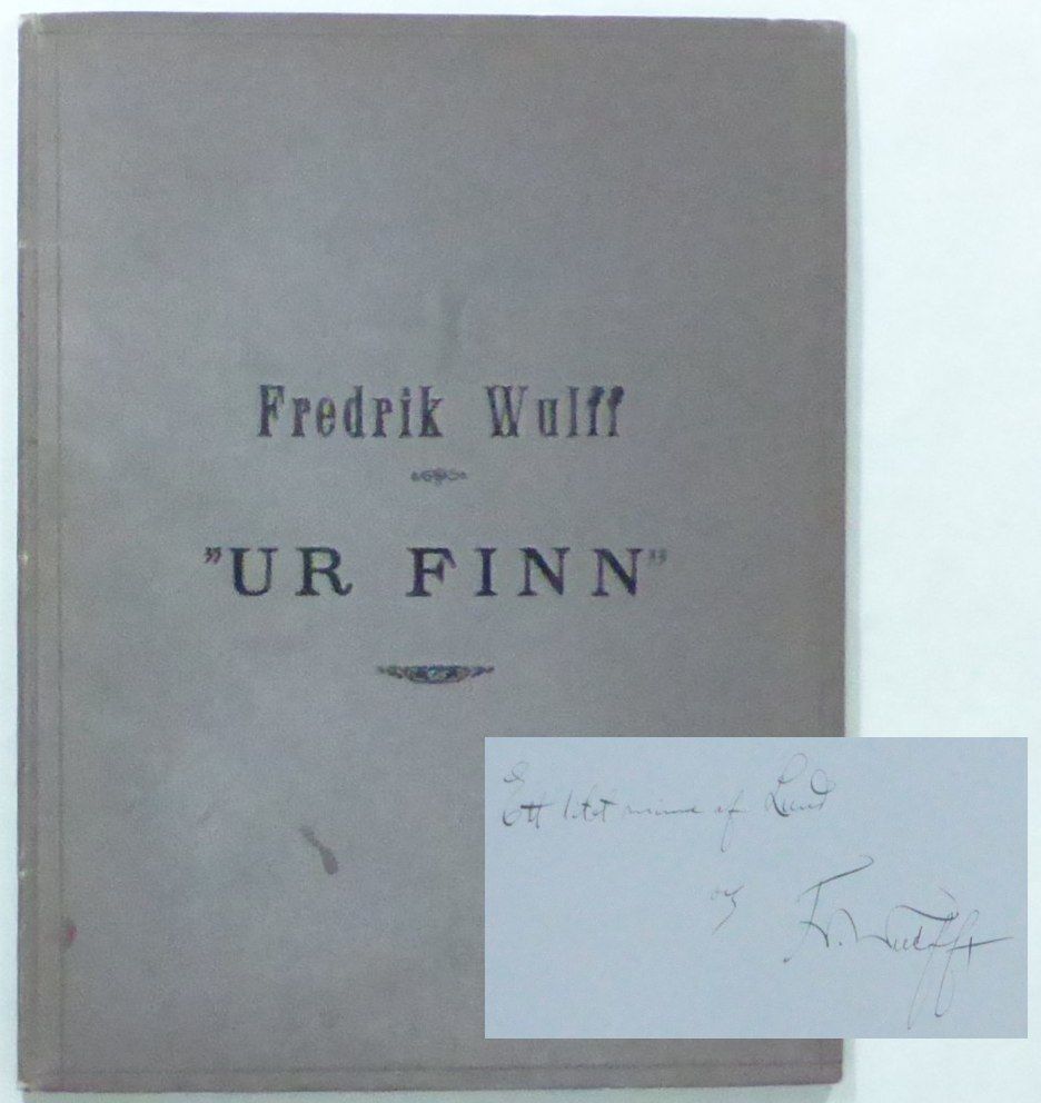 Lund; E, Malmströms boktryckeri, 1902. 31,5x24,5 cm. (2, 2 blanka), 11, (1) s. + karta. Sammanbunden med författarens ""Gullbröst. Ett sommarminne ur dagboken, Borgholm 1895"". Lund; E, Malmströms boktryckeri, 1899. Båda främre omslagen medbundna. Medbundet är även Wulffs ""Till ryktet. Herdarnas kör ur Tassos Aminta"", särtryck ur ""Finn"" (1900). (2) s. Samtida brunt klotband med titel i svart på främre pärm. Aningen nött rygg samt några svaga fläckar på främre pärm. Ett bläckstreck i yttermarginalen på sista sidan i ""Gullbröst"". Fint ex. Dedikation på främre försättsblad: ""Ett litet minne af Lund och Fredrik Wulff"".