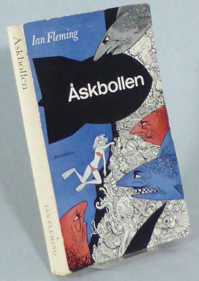 Stockholm; Bonniers, 1962. Originalets titel: Thunderball (London, 1961). Översättning av Mons Mossner. 21x13,5 cm. 230, (2) s. Häftad med tryckt omslag. Omslag av Hans Arnold. Lätt snedläst. Ryggen aningen nött samt med läsveck och en liten mörk prick. Det överdimensionerade omslaget är lite veckat i nedre marginalen samt vid hörnen. Bra ex. Första svenska utgåvan.