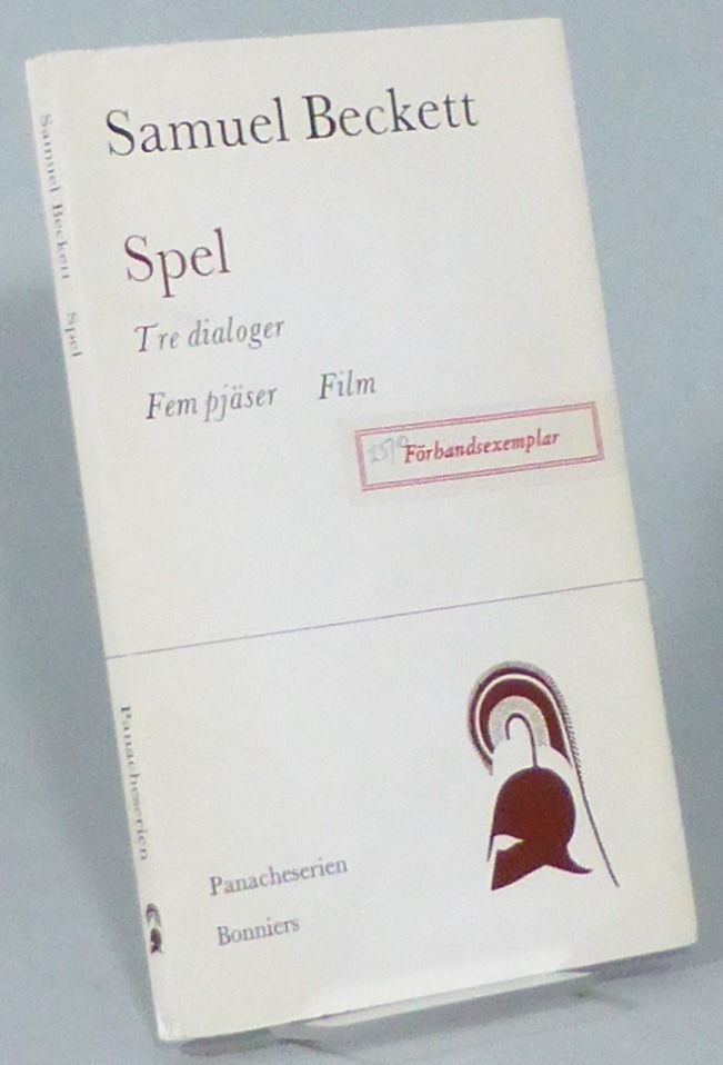 Stockholm; Bonniers, 1968. (Panacheserien). 20x12 cm. 91, (1) s. + förlagsreklam. Häftad med tryckt omslag. Etikett med texten ""Förhansexemplar"" på främre omslag. Omslaget är obetydligt solkat. Några sidor med svaga blyertsunderstrykningar. Fint ex. Innehåll: Tre dialoger med Georges Duthuit. Översättning av Jan Stolpe / Spel. En akt. Översättning av Göran O Eriksson / Akt utan ord II. En mim för två personer och en båtshake. Översättning av Magnus Hedlund / Cascando. En Radiopjäs för Musik och Röst. Översättning av Magnus Hedlund / Va Joe. En pjäs för television. Översättning av Magnus Hedlund / Film. Översättning av Magnus Hedlund / Kommer och går. Dramaticule. Översättning av Magnus Hedlund. Originalens titlar: Three Dialogues (1949) / Play (1964) / Acte sans paroles II (1963) / Cascando (1963) / Eh Joe (1967) / Film (1964). Första svenska utgåvan av samtliga arbeten, förutom Va Joe. Proveniens: Ingemar och Mikaela Leckius.