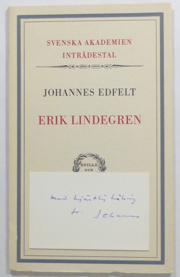 Erik Lindegren. Inträdestal i Svenska Akademien av Johannes Edfelt.