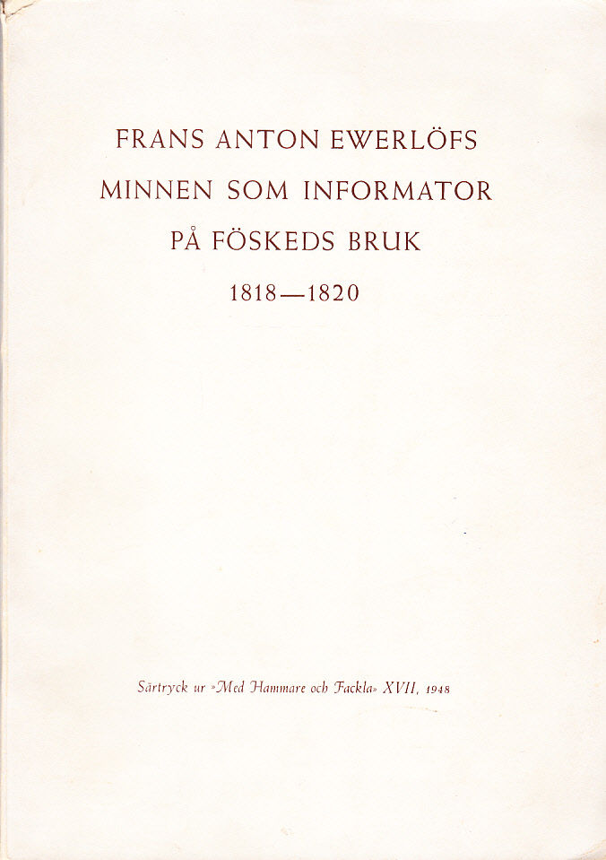 Frans Anton Ewerlöfs minnen som informator på Föskeds bruk 1818-1820. Ur hans dagboksanteckningar. Inledning, kort brukshistorik och personregister av Lennart Geijer och S.L. Wahlström.