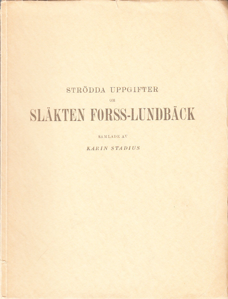 Strödda uppgifter om släkten Forss-Lundbäck, samlade.