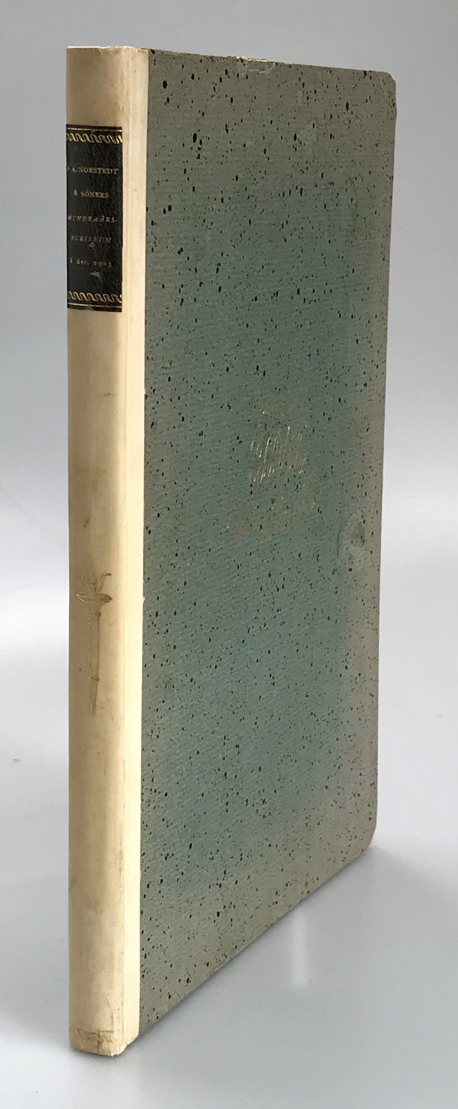 Stockholm, P.A. Norstedt & Söner, 1924. 4:o. Frontespis, (3), 77, (2) s., (14) pl.-bl. Illustrerad. Förlagets halvpergamentband med grön skinntiteletikett, rygg- & pärmdekor i guld, stänkmarmorerat solblekt pärmpapper. Båda omslagen medbundna.