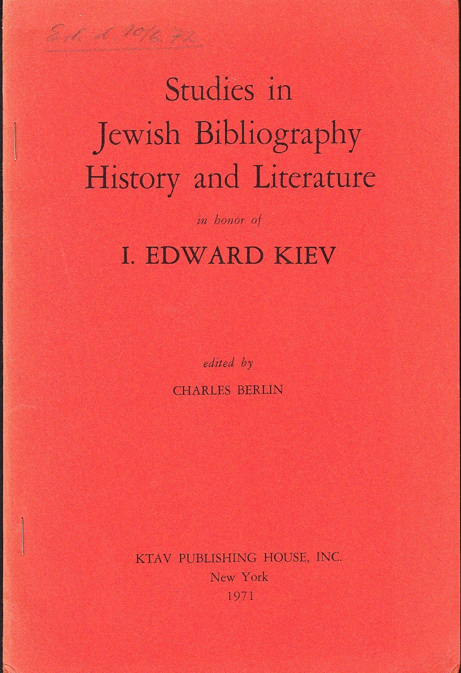 New York, KTAV Publishing House Inc., 1971. 8:o. s. 113-131. Klammerhäftad med rött tryckt pappersomslag.