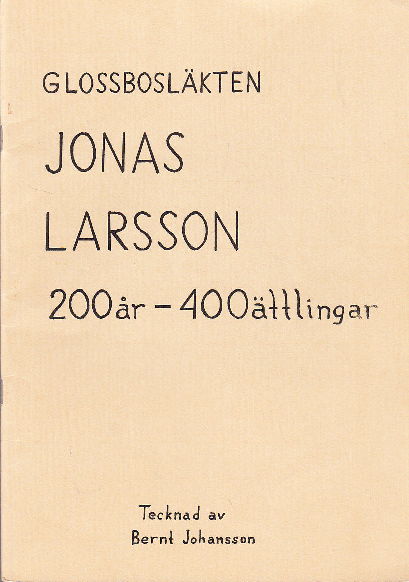 Glossbosläkten Jonas Larsson 200 år - 400 ättlingar. Tecknad av Bernt Johansson [= omslagstitel].