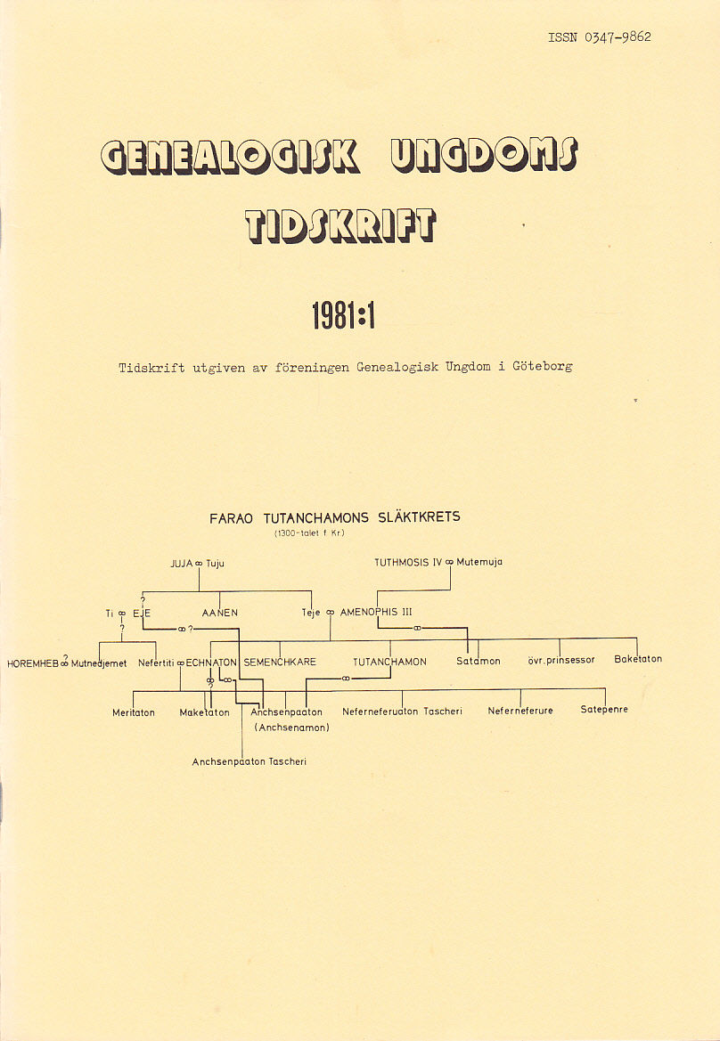 Genealogisk Ungdoms Tidskrift 1981:1-4. (Årg. 5). Tidskrift utgiven av föreningen Genealogisk Ungdom i Göteborg. [Red.: Peter Olausson].