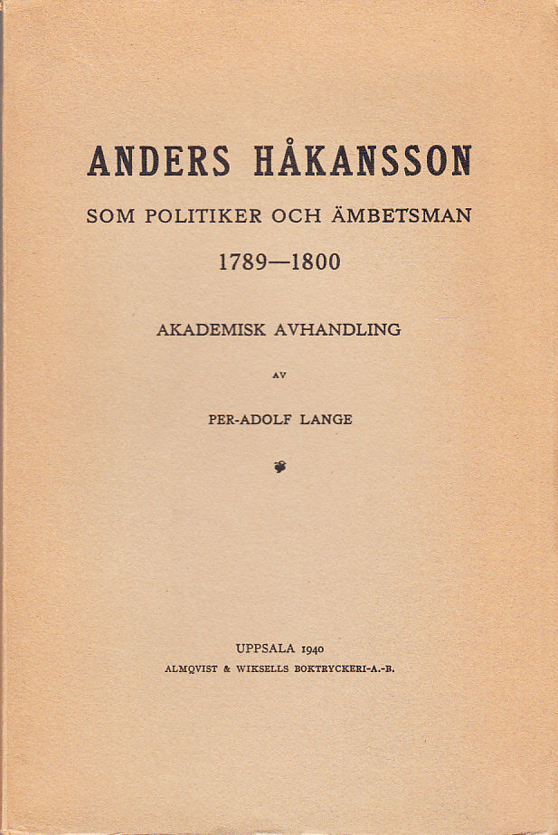 Anders Håkansson som politiker och ämbetsman 1789-1800. Ak. Avh.