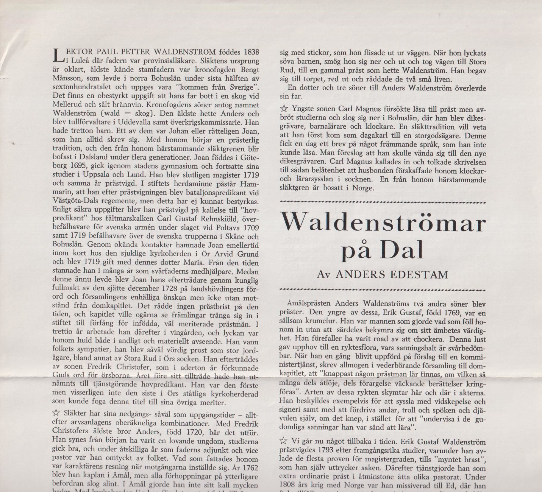 Waldenströmar på Dal [= rubrik].