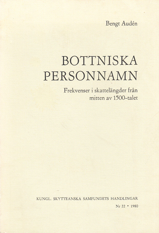Bottniska personnamn. Frekvenser i skattelängder från mitten av 1500-talet.