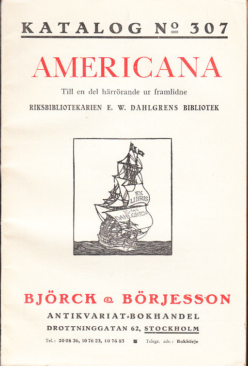 Katalog 307. Americana. Till en del härrörande ur framlidne riksbibliotekarien E.W. Dahlgrens bibliotek.