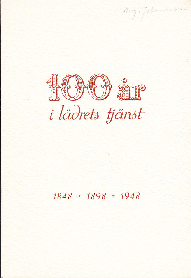 Minnesskrift med anledning av vårt 100-årsjubileum 1848-1948. Aug. Johansson. Sko & Läder Ab. [100 år i lädrets tjänst. 1848 - 1898 - 1948].