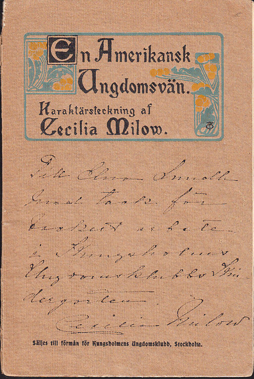 Endast tillgänglig i 1 Libris-bibliotek (KB). Omslagstitel: En amerikansk ungdomsvän. Säljes till förmån för Kungsholmens Ungdomsklubb, Stockholm.