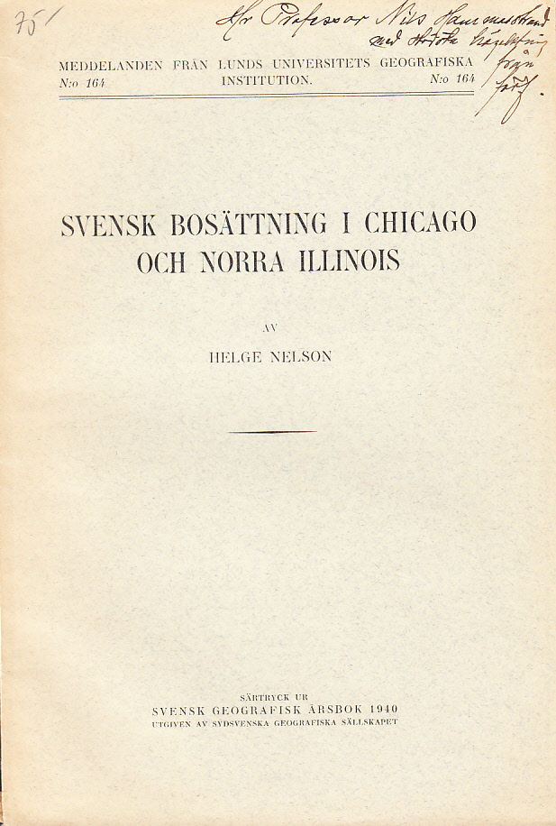 Lund, Carl Bloms Boktryckeri, 1941. 8:o. s. 108-151. Klammerhäftad med tryckt eget något nött pappersomslag. För- & understrykningar, samt marginalanteckningar förekommer. Författardedikation till ‘professor Nils Hammarstrand’ på främre omslag.