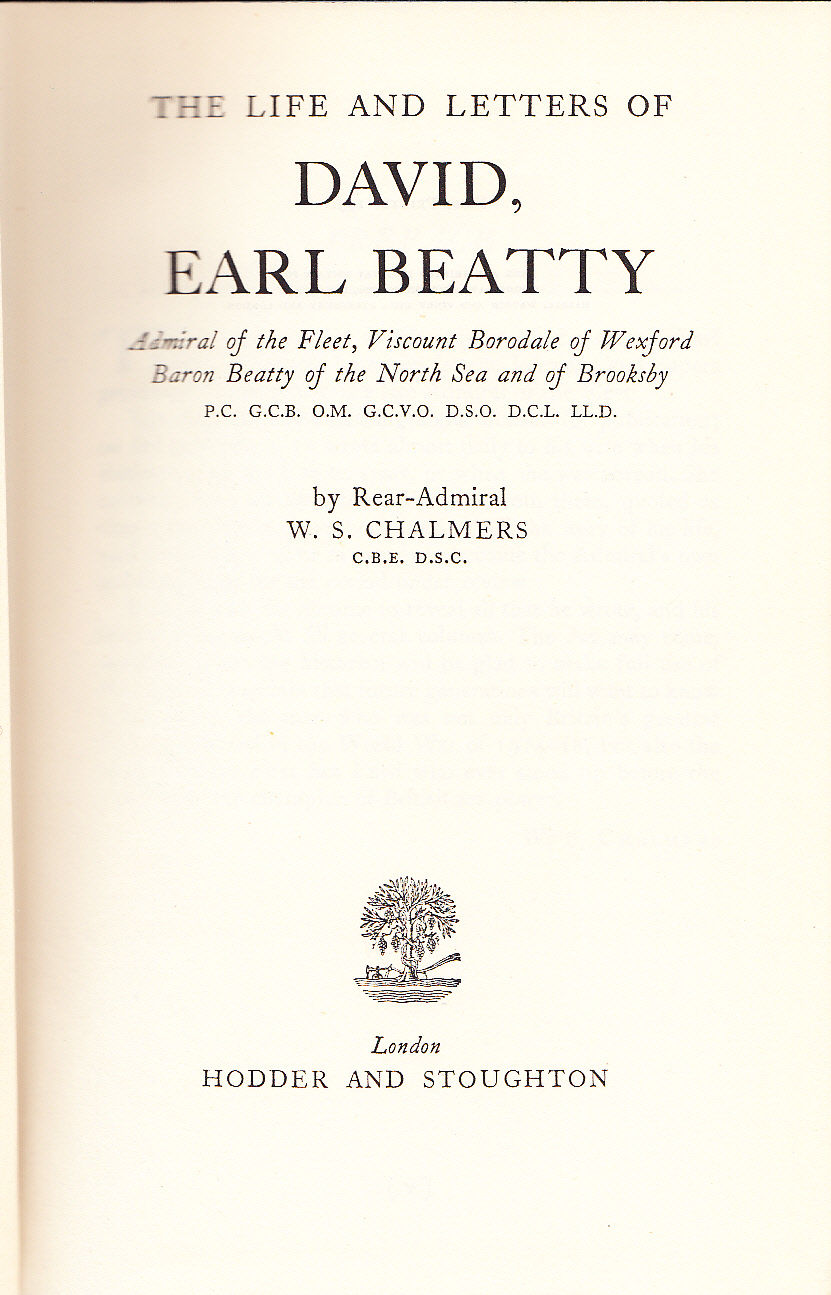 The life and letters of David, Earl Beatty. Admiral of the Fleet, Viscount Borodale of Wexford, Baron Beatty of the North Sea and of Brooksby. By Rear-Admiral W.S. Chalmers.