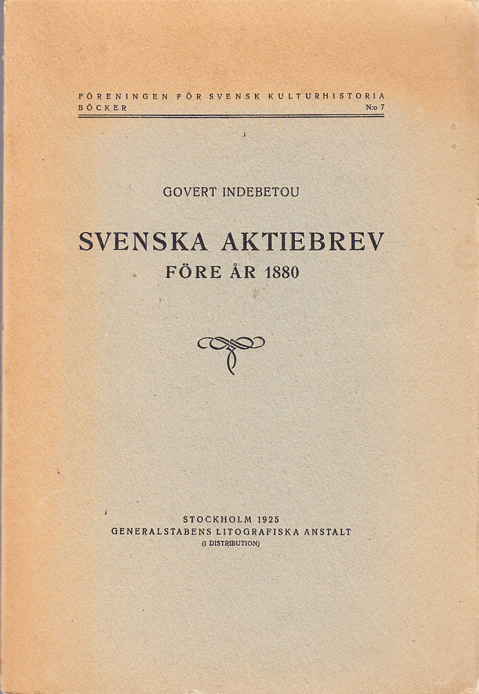 Svenska aktiebrev före år 1880. Utgivna med anslag från Svenska Fondhandlarföreningen.