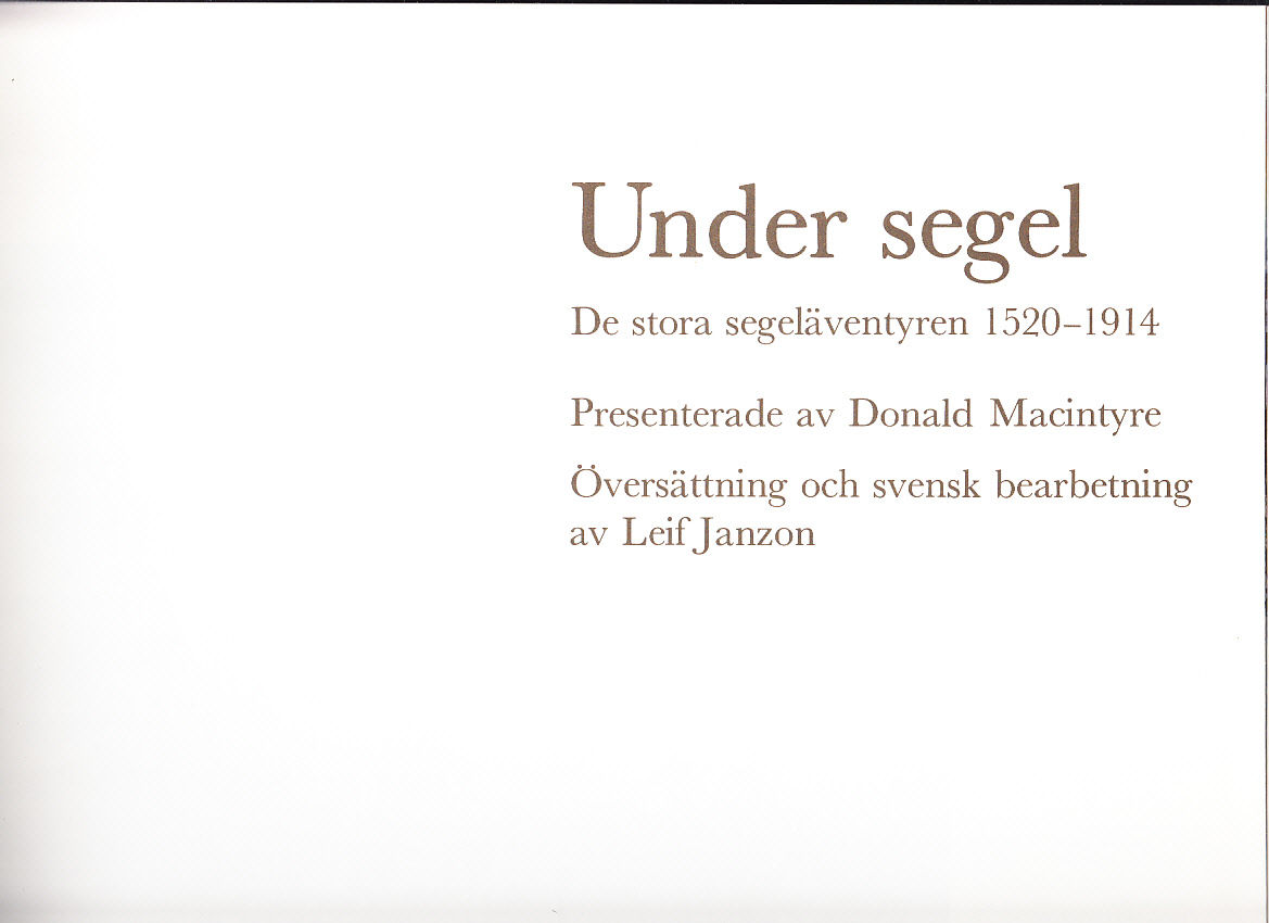 Under segel. De stora segeläventyren 1520-1914. Presenterade av Donald Macintyre. Översättning och svensk bearbetning av Leif Janzon. [Utg. av] Forum.