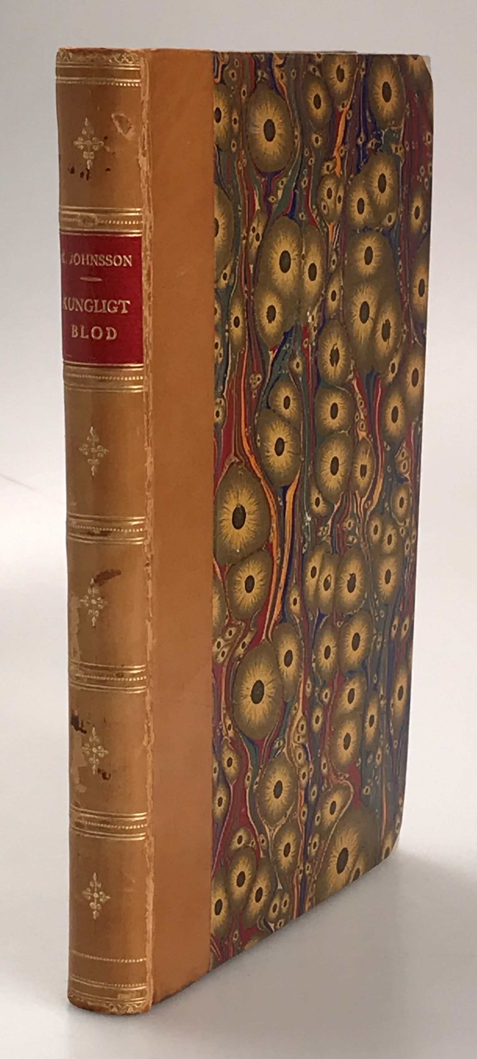 Stockholm, Svenska Tryckeriaktiebolaget, 1919. 8:o. 277, (3) s. Illustrerad. Brunt halvskinnband (Gust. Hedberg) med marmorerat pärmpapper, fyra markerade bind, rött titelfält, marmorerade snitt. Främre omslag medbundet. Lätt skavd rygg. Med C.G. Platens exlibris.