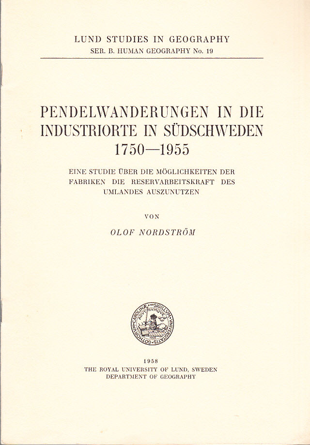Pendelwanderungen in die Industrieorte in Südschweden 1750-1955 : eine Studie über die Möglichkeiten der Fabriken die Reservarbeitskraft des Umlandes auszunutzen.