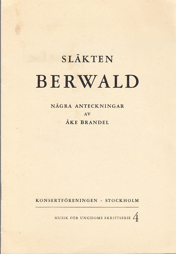 Släkten Berwald. Några anteckningar. [Utg. av] Konsertföreningen.