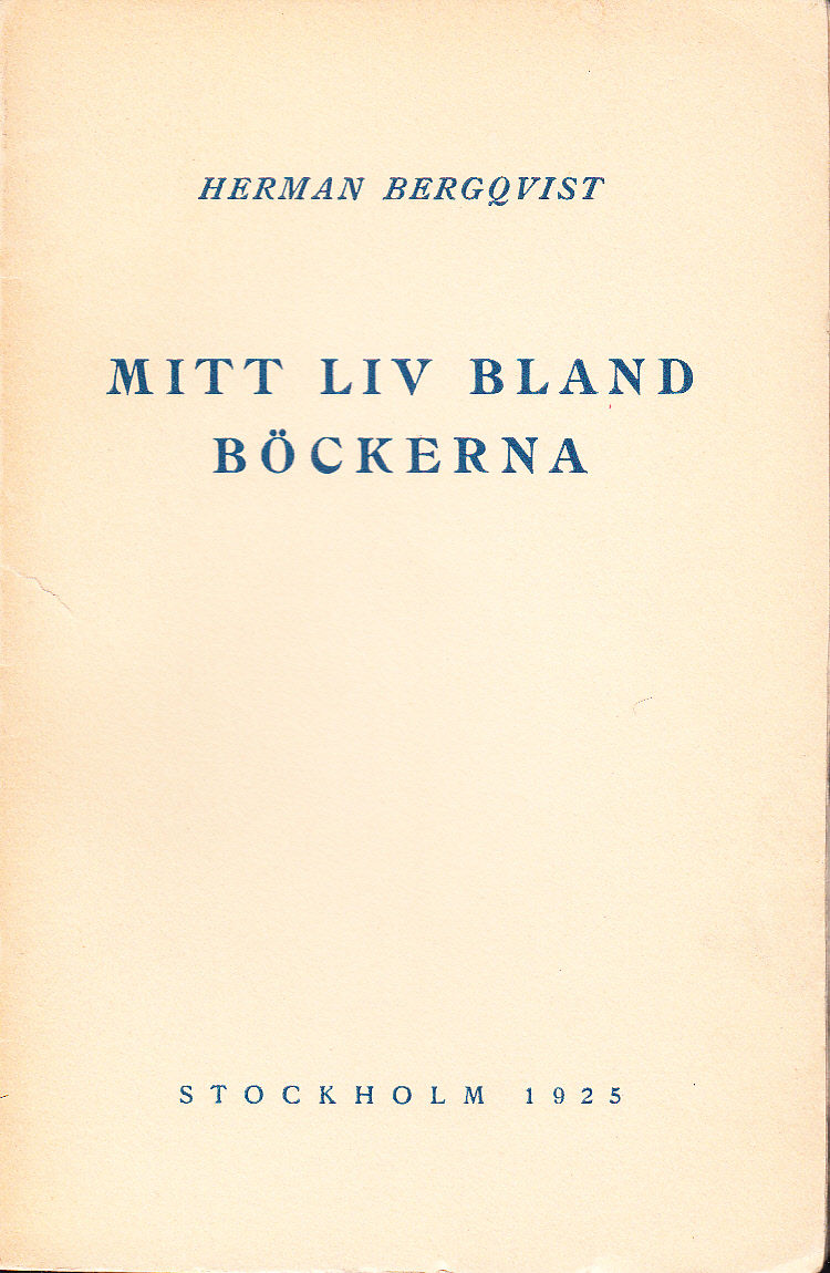 Stockholm, Alb. Bonniers Boktryckeri, 1925. 8:o. 67 s., 9 pl.-bl. Illustrerad. Trådhäftad med styvt tryckt pappersomslag. Tillskrift ‘Arvid Olsson, vänskapsfullt, Herman Bergqvist’ på halvtitelbladet.