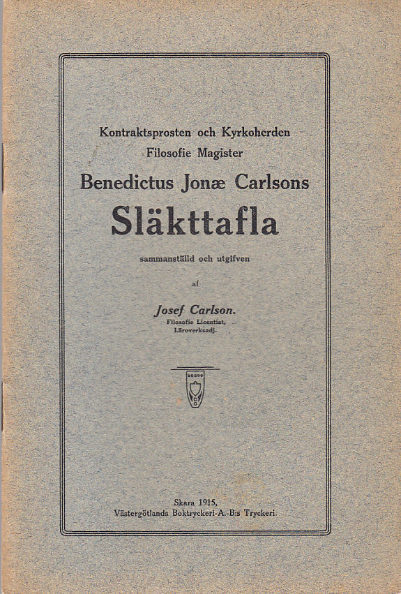 Kontraktsprosten och kyrkoherden, filosofie magister Benedictus Jonæ Carlsons släkttafla, sammanställd och utgifven.