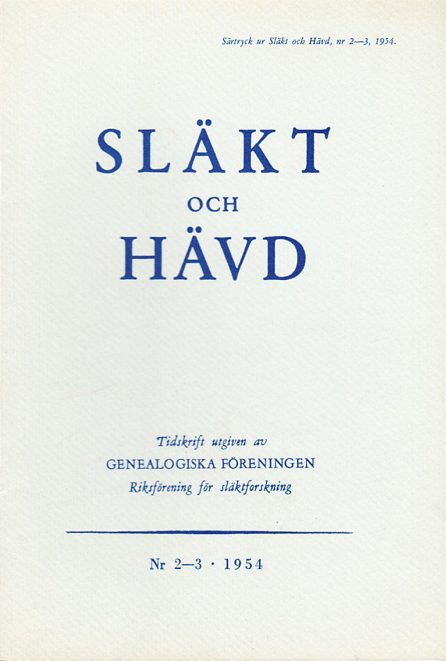 Särtryck ur ‘Släkt och hävd 1954:2-3’.
