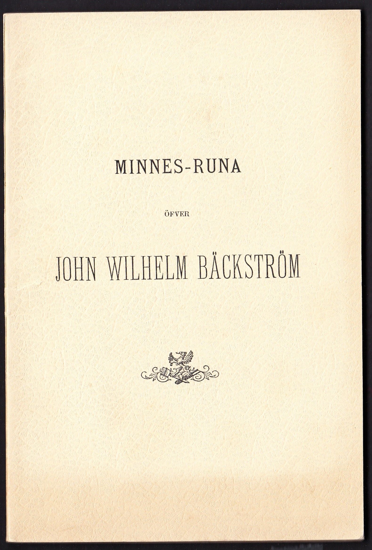 Minnes-runa öfver boktryckerikonstförvandten John Wilhelm Bäckström af C.F.B. Med ett porträtt och två bilagor. Utgifven till förmån för Gutenbergska stiftelsen.