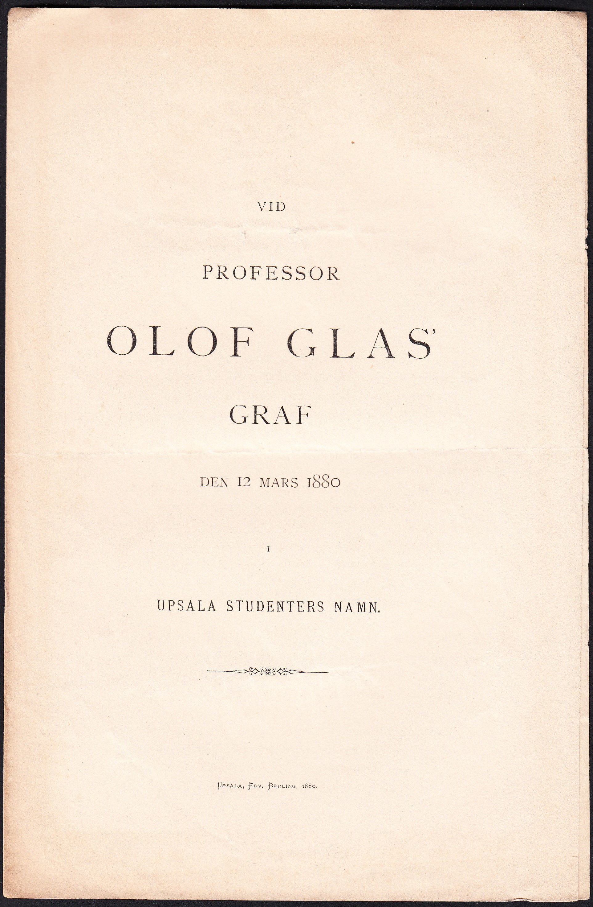 Vid professor Olof Glas’ graf den 12 mars 1880 i Upsala studenters namn.