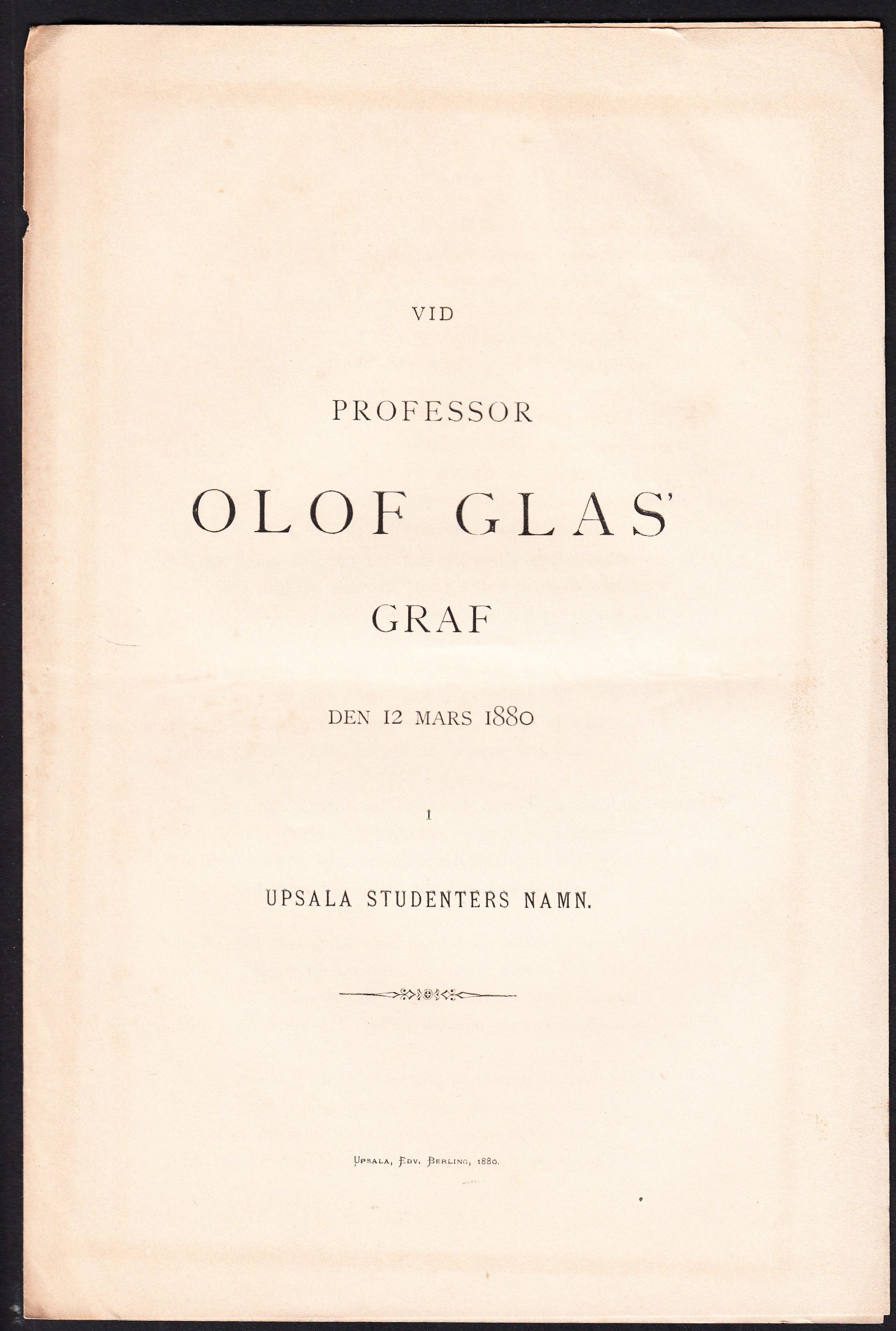Vid professor Olof Glas’ graf den 12 mars 1880 i Upsala studenters namn.