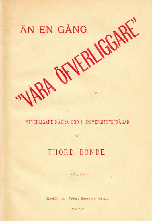 Än en gång ‘Våra öfverliggare’ samt ytterligare några ord i universitetsfrågan af Thord Bonde.