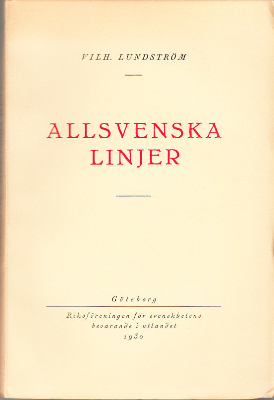 Allsvenska linjer. [Utg. av] Riksföreningen för svenskhetens bevarande i utlandet.