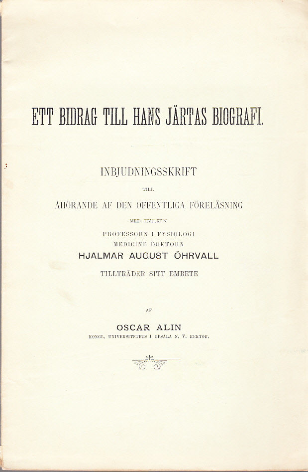 Ett bidrag till Hans Järtas biografi. Inbjudningsskrift till åhörande af den offentliga föreläsning med hvilken professorn i fysiologi medicine doktorn Hjalmar August Öhrvall tillträder sitt ämbete af Oscar Alin.
