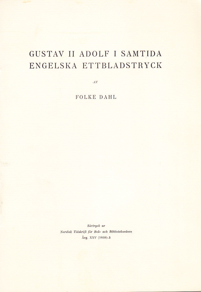 Gustav II Adolf i samtida engelska ettbladstryck, av F. Dahl [= rubrik].