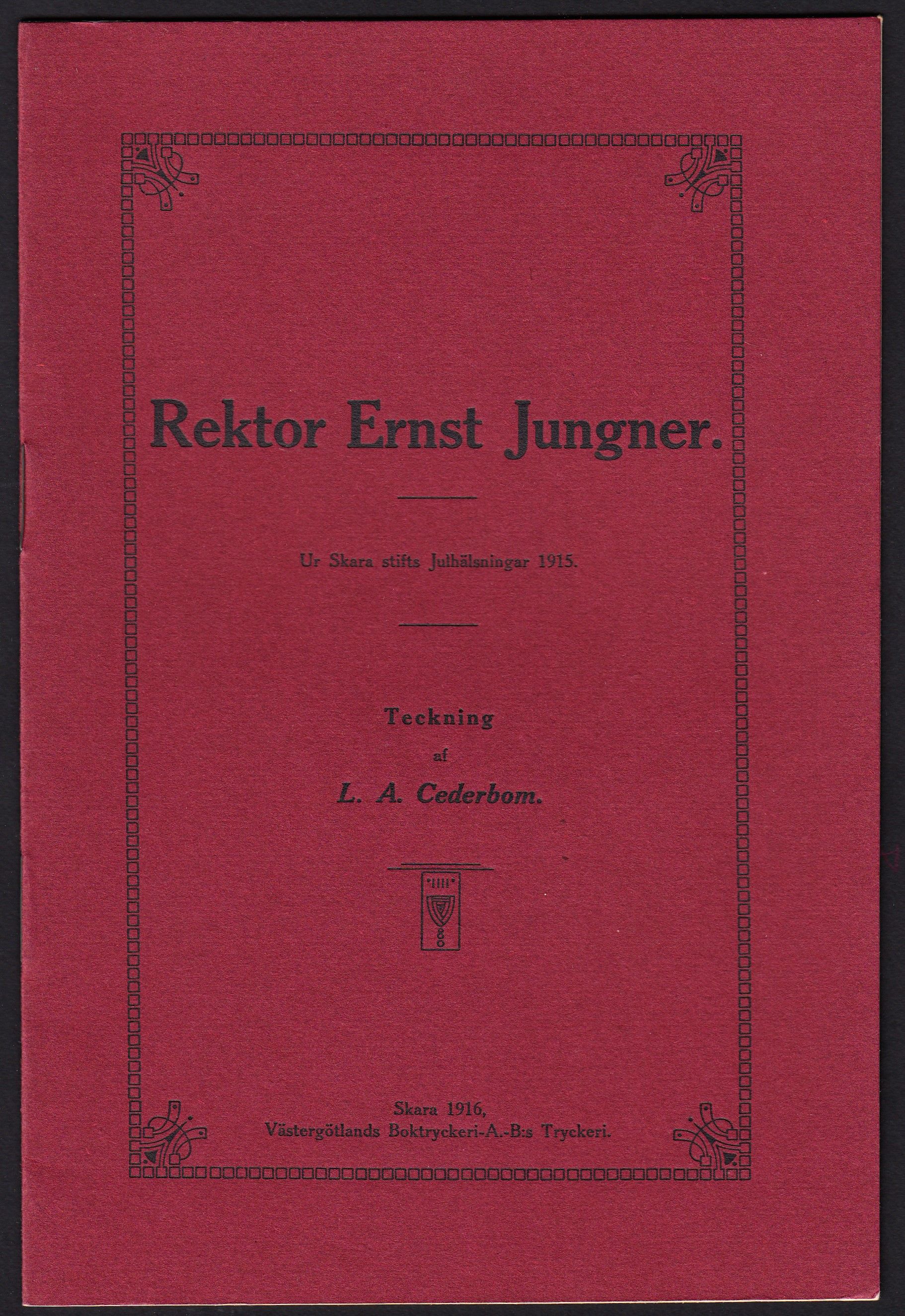 Rektor Ernst Jungner. Ur Skara stifts Julhälsningar 1915. Teckning af L.A. Cederbom.