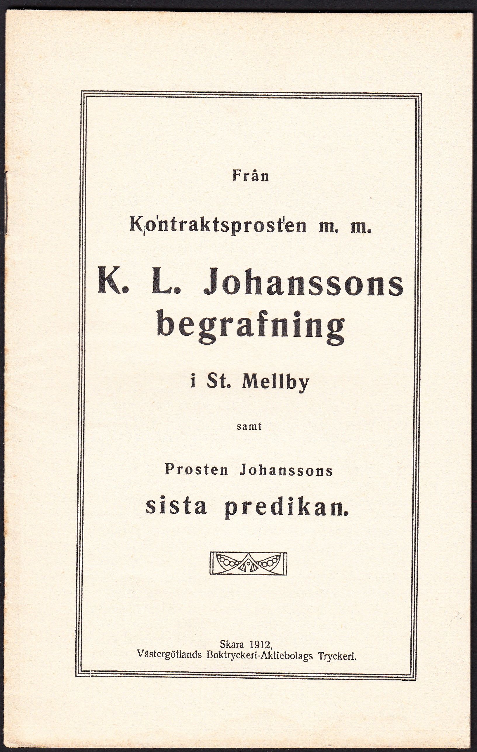 Från kontraktsprosten m.m. K.L. Johanssons begrafning i St. Mellby samt prosten Johanssons sista predikan [= omslagstitel].