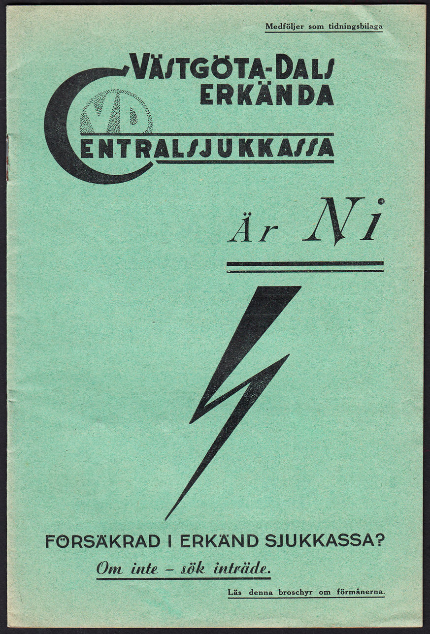 Medföljer som tidningsbilaga. Innehåll: Västgöta-Dals erkända centralsjukkassa, omfattande Älvsborgs och Skaraborgs län; Barnförsäkring; Förteckning över erkända lokalsjukkassor; Förteckning över ombud inom Västgöta-Dals erkända centralsjukkassas verksamhetsområde.