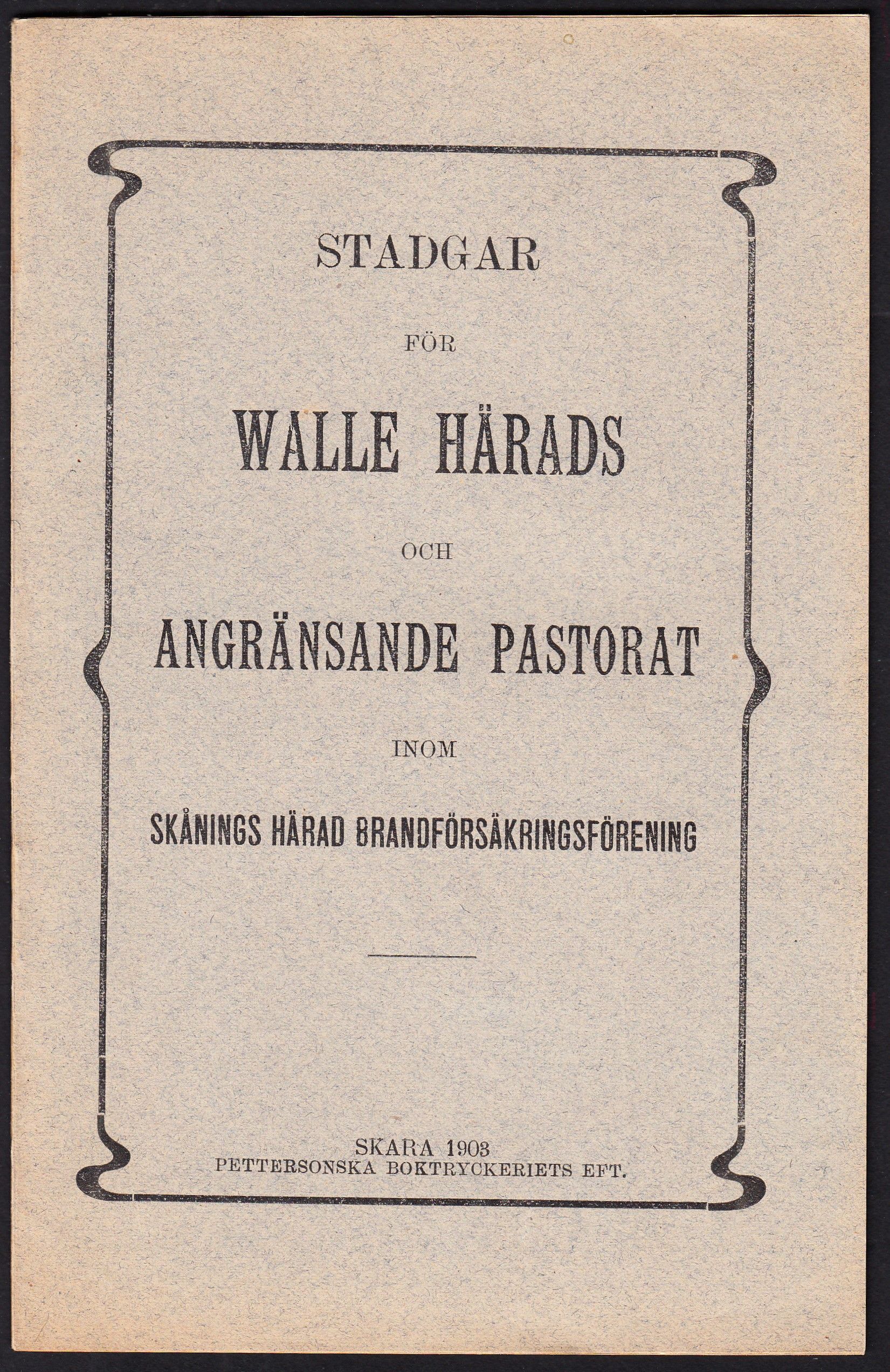 Stadgar för Walle härads och angränsande pastorats inom Skånings härad brandförsäkringsförening.