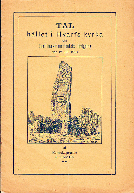 Tal hållet i Hvarfs kyrka vid Gestilren-monumentets invigning den 17 juli 1910.